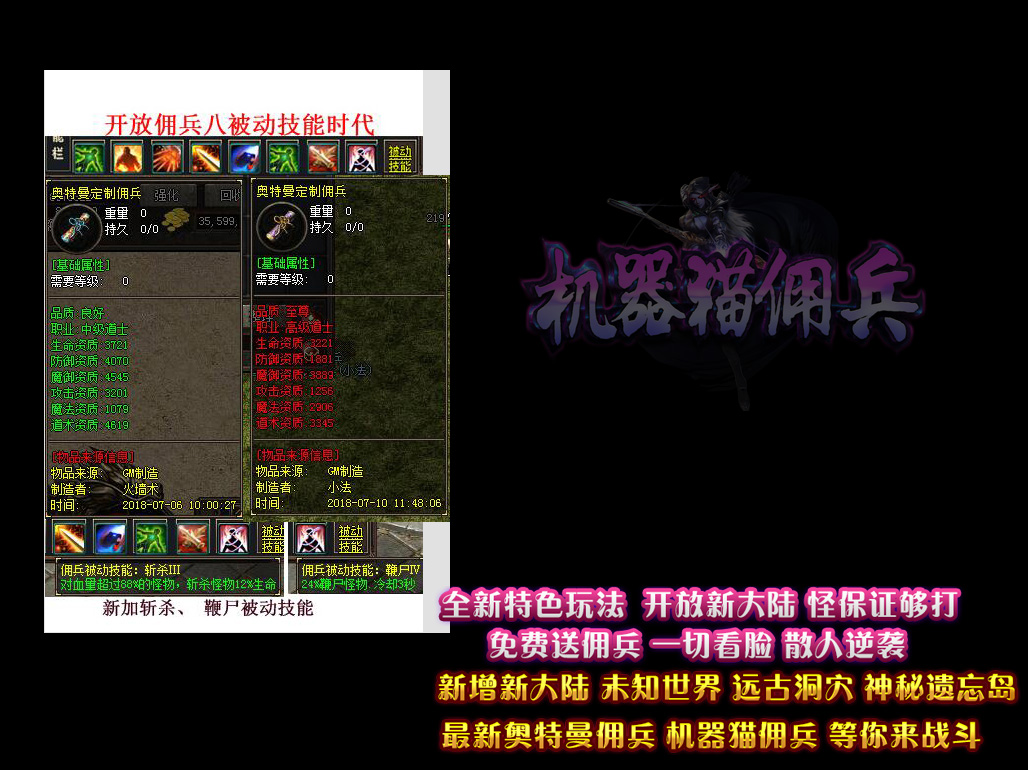 - 【机器猫佣兵】 独家暗黑鉴定系统,开放新古老洞穴,里面怪很凶!Q群:421317201