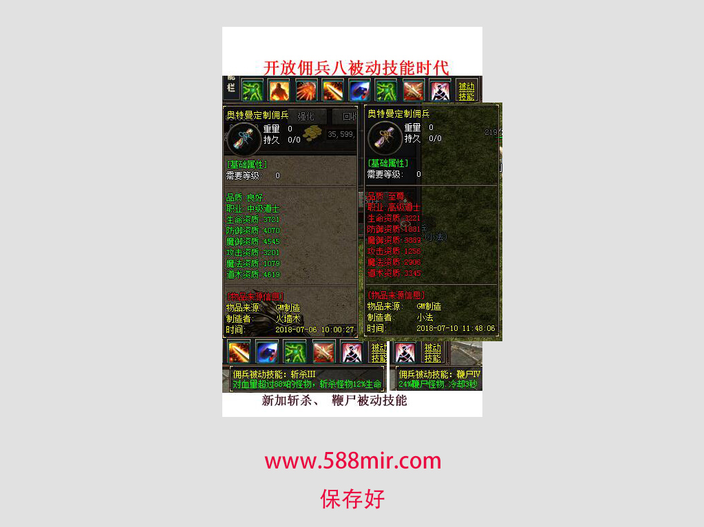 - 【机器猫佣兵】 散人有时间一样可以到终极,本服的装备是全爆的,BOSS全部掉落!花100当爷,一切靠打